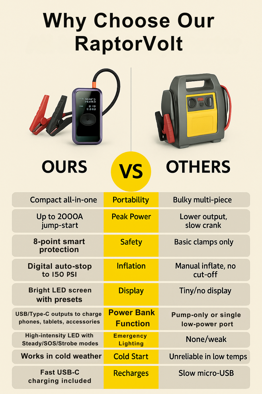 I was blown away by how quickly RaptorVolt brought my car back to life. No waiting, no second tries—just connected the clamps, hit the power, and boom, the engine roared
